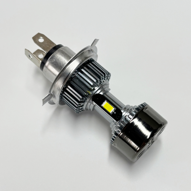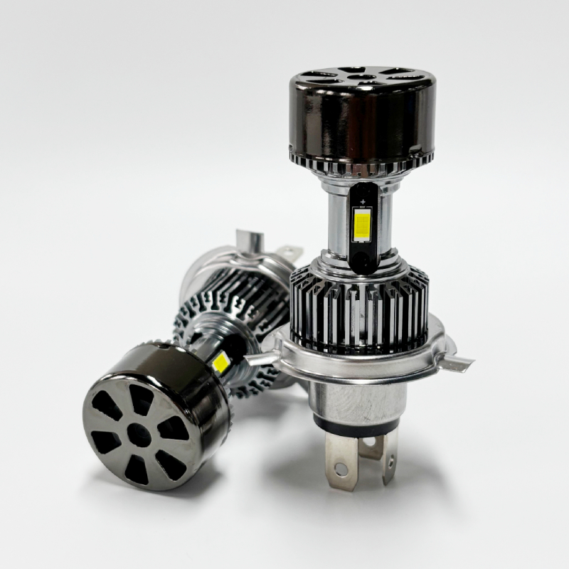 All-in-one H4 LED headlight Bulb. No bulky base, no external driver, just plug and play. High and low beams can be switched freely to meet different road conditions and make driving safer. The H4 motorcycle LED headlight has a 3-sided emitting design, 360° lighting, and no dark spots.